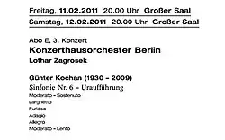 - ↑ Udo Badelt: Konzert. Lothar Zagrosek dirigiert Günter Kochan. Gebrochene Versprechen. In: Der Tagesspiegel vom 10. Februar 2011, S. 12.