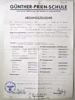 23. Aktenbestand „Günther-Prien-Oberschule in Litzmannstadt (Łódź)“, Staatsarchiv Posen (Archiwum Państwowe w Poznaniu), Signatur 53/299/0/3.3/2471, Scan Nr. 21. Archiviert vom Original (nicht mehr online verfügbar) am 28. April 2016; abgerufen am 27. April 2016.  Info: Der Archivlink wurde automatisch eingesetzt und noch nicht geprüft. Bitte prüfe Original- und Archivlink gemäß Anleitung und entferne dann diesen Hinweis.@1@2Vorlage:Webachiv/IABot/szukajwarchiwach.pl