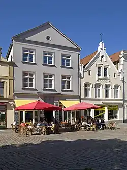 - Nr. 24: 3-gesch. Wohn- und Geschäftshaus, Kemladen mit Logenraum (D), Rats Apotheke seit 1791, vorgesetzte Fassade mit hohem Gesims im Stil des Eklektizismus und Art déco teils nach Umbau von 1922–26, saniert 1996–98