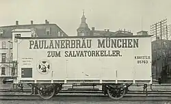 Bierwagen ist ein Güterwagen zur „Beförderung von Bier auf größere Entfernungen mit Einrichtungen, die das Bier vor schädlichen Temperatureinflüssen schützen.“[12]