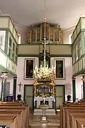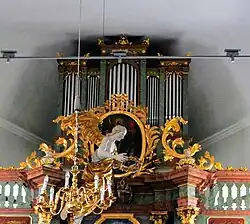 II/P | 21 | Im historischen Prospekt aus der Zeit um 1810; 1985 neobarocker Umbau und Erweiterung auf 23 Register durch Krätzer, Nürnberg; 2012 Restaurierung und weitgehende Rückführung in den Originalzustand durch Klais (Opus 1906) → Orgel | ||||||||