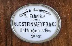 Das Unternehmen G. F. Steinmeyer & Co. in Oettingen war in den Jahren 1847 bis 2001 ein namhafter Hersteller von Harmonien und Orgeln.