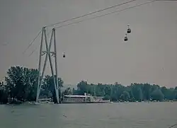 Da die G59 an beiden Seeufern stattfand, war es notwendig, einen direkten und schnellen Transport der Besuchenden vom einen Ufer zum anderen sicherzustellen. Wie schon bei der Landi 1939 kam dabei eine Flottille von Pendelschiffen zum Einsatz. Auch wurde wiederum eine Gondelbahn errichtet, deren 55 Meter hohe Stützen eine ganz besondere Attraktion darstellten. Die vom Architekten Werner Stücheli in Zusammenarbeit mit dem Ingenieur Max Walt entstandenen Pfeiler wurden in der Schweizerischen Bauzeitung von Walter Jegher überschwänglich gelobt: «Nun aber kam vor wenigen Wochen die grosse Überraschung: Die Stützen der Schwebebahn, welche über den See hinweg beide Ufer verbindet. Sie übertreffen an Schönheit und Grösse (innere, formal zum Ausdruck kommende Grösse, nicht Anzahl Meter) alles, was wir in den letzten Jahren an Ausstellungs-Baukunst gesehen haben, Brüssel nicht ausgenommen.»[2]