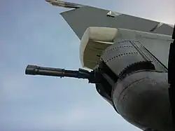 - Jagdbomber Suchoi Su-17/-20/-22 „Fitter“ in zusätzlichen SPPU-22-01-Kanonenbehältern nach vorn oder nach hinten schießend