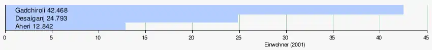 Einwohnerstärkste Ortschaft des Distrikts ist der Hauptort Gadchiroli. Weitere bedeutende Städte mit einer Einwohnerschaft von mehr als 10.000 Menschen sind Desaiganj und Aheri.