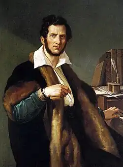 Ungewöhnlich für einen italienischen Komponisten seiner Generation lernte er früh in seiner Ausbildung durch Mayr auch Werke von Haydn und Mozart kennen,[106] woraus von vornherein ein etwas anderer Umgang vor allem mit dem Orchesterklang resultierte, als bei seinen italienischen Kollegen. Da seine Karriere auf dem Höhepunkt von Rossinis Popularität begann und er außerdem ab 1822 in dessen ehemaliger Hochburg Neapel wirkte, musste sich der nur fünf Jahre jüngere Donizetti geradezu zwangsläufig auch in den frühen bis mittleren 1820er Jahren dem Publikumsgeschmack anpassen, der unter anderem in einer Vorliebe für virtuosen Koloraturgesang in allen Stimmlagen bestand.[107] Dabei ist jedoch bei Donizetti eine stete Entwicklung zu erkennen, in der er seinen Personalstil, der zu einem romantischeren Lyrismus und tragischer Dramatik tendierte, immer deutlicher ausprägte und keineswegs nur Rossini-Floskeln imitierte.