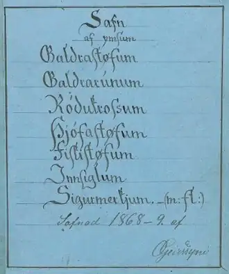 - ↑ Da mehrere isländische Handschriften mit „Galdrakver“ bezeichnet werden, ist zur Unterscheidung in der Artikelbezeichnung in Klammern die Verfassungszeit hinzugefügt.