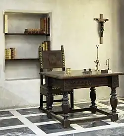 Spätestens bei der Umsiedlung nach Florenz trennte sich Galilei von Marina Gamba (* 1570), seiner Haushälterin, mit der er drei Kinder hatte: Virginia (1600–1634), Livia (1601–1659) und Vincenzio (1606–1669). Mit Hilfe eines Bewunderers, des Kardinals Maffeo Barberini und späteren Papstes Urban VIII., brachte Galilei seine Töchter noch vor Erreichen des Mindestalters im nahen Kloster San Matteo von Arcetri unter, weil sie als uneheliche Kinder kaum Aussichten auf eine standesgemäße Heirat hatten. Er zwang sie, im Alter von 16 Jahren das Gelübde als Nonne abzulegen. Während sich Viriginia als Schwester Maria Celeste damit abfand und in ständigem Briefkontakt mit ihrem Vater blieb,[22] akzeptierte Livia als Schwester Arcangela die Anordnung ihres Vaters nie. Als Marina Gamba im August 1612 starb, wurde der Sohn Vincenzio zu seinem Vater nach Florenz geschickt und 1619 auf Fürsprache des Großherzogs Cosimo II. legitimiert.[23] Er schloss 1628 ein Jurastudium an der Universität Pisa ab, war in Kanzleien beschäftigt und verbesserte mit seinem Vater die Pendeluhr.[24]