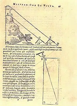 Mitte 1609 erfuhr Galilei über seinen Freund Paolo Sarpi Details über das im Jahr zuvor in Holland von Jan Lipperhey erfundene Fernrohr mit ungefähr vierfacher Vergrößerung. Er baute aus käuflichen Linsen ein Gerät, lernte selbst Linsen zu schleifen und erreichte bald eine neunfache und in späteren Jahren eine bis zu 30-fache Vergrößerung.[15] Aus dieser Zeit stammt auch ein in der Nationalbibliothek von Florenz entdeckter Einkaufszettel, der Einblick gibt, wie Galilei seine diesbezüglichen Erkenntnisse in die Praxis umsetzte.[16]