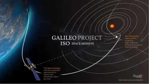 Das Projekt plant die Suche, Charakterisierung und Untersuchung von interstellaren Objekten (ISOs) wie dem eigentümlichen Oumuamua, das in 2017.[11][39] Sie beabsichtigen, astronomische Durchmusterungen wie das Vera C. Rubin Observatory zu nutzen, um solche Objekte schneller identifizieren zu können, und eine Weltraummission zu entwerfen, damit eine Sonde das Objekt abfangen und aus nächster Nähe aufnehmen kann Daten.[11][1][2] Das Team beabsichtigt, eine Software zu entwickeln, die die vom Vera-Rubin-Observatorium gesammelten Daten analysiert.[18] Es wird angenommen, dass das Observatorium, sobald es mit seiner Legacy Survey of Space and Time (LSST) beginnt, in der Lage sein wird, ISOs zu erkennen, die mit einer Rate von einigen wenigen pro Monat in unser Sonnensystem eindringen.[5]