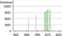 Nach einer Berechnung für das Jahr 2013 leben dort etwa 9859 Einwohner, das Ergebnis der letzten veröffentlichten Volkszählung von 1993 betrug 7702.[1]