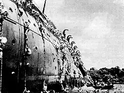 Die USS Gamble (DM-15), die sieben battle stars im Krieg erhalten hatte, wurde am 16. Juli 1945 nahe Apra Harbor/Guam versenkt.[4]