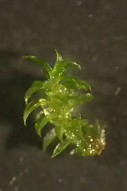 Bei Laubmoosen bezeichnet man als Gametophor die in Stämmchen und Blättchen gegliederte eigentliche Moospflanze (siehe auch „Thallus“). Er stellt die adulte Form des haploiden Gametophyten dar und entwickelt sich aus dessen juveniler Form, dem Protonema, unter dem Einfluss von Phytohormonen (v. a Cytokinin).[6] Während das fädige Protonema mit einschneidiger Scheitelzelle wächst, besitzt der Gametophor eine dreischneidige Scheitelzelle.