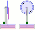Der Verdrängerkolben und -zylinder können aus Glas sein[6] oder Metall[7] und ist horizontal ausgerichtet. Der Verdrängerkolben ist in der Regel hohl, um Gewicht zu sparen.