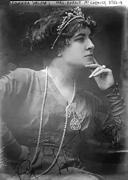1918 gab Walska ihr Debüt in den USA in einer Aufführung gemeinsam mit Enrico Caruso bei den Biltmore Morning Musicals. Zu dieser Zeit lernte sie Harold McCormick kennen, den millionenschweren Sohn eines Chicagoer Unternehmers, der die Chicago Opera Company als Mäzen unterstützte und später ihr vierter Ehemann werden sollte.[5] 1920 starb der Ehemann Joseph Fraenkel, und „Ganna Walska gehörte nun der amerikanischen High Society an, ihre Ehen und Scheidungen, ihre wertvollen Juwelen, ihre zum Teil skandalumwitterten Auftritte machten Schlagzeilen“[8].