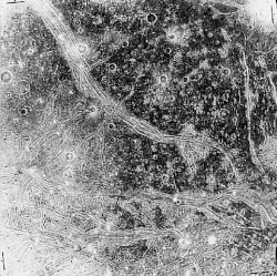 - ↑ P. Schenk, J. Moore: Volcanic constructs on Ganymede and Enceladus: Topographic evidence from stereo images and photoclinometry. In: J. Geophys. Res. 100(E9). Jahrgang, 25. September 1995, S. 19009–19022, doi:10.1029/95JE01854, bibcode:1995JGR...10019009S (englisch).