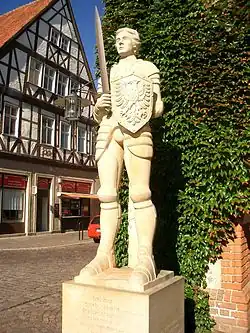 Der Neuen Hanse trat Gardelegen 1995 bei und ist seit 1998 Teil des Altmärkischen Hansebundes.[21] 275 Jahre nach seiner Zerstörung erhielt Gardelegen im Jahr 2002 einen neuen Roland. Wenige Monate später wurde der Komiker und Musiker Otto Reutter mit einer Bronzeskulptur im Stadtzentrum geehrt. Seit dem 28. Mai 2008 trägt die Stadt, als Mitglied des Hansebundes der Neuzeit, wieder den Namenszusatz Hansestadt.[2]