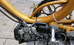 | Gemischaufbereitung | Dell’Orto-Flachschiebersteckvergaser SHA 14/9 | ||