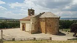- Die Chorpartie der in der zweiten Hälfte des 16. Jahrhunderts entstandenen und von einem Glockengiebel (espandaña) überhöhten Iglesia San Juan Bautista ist eindeutig gotisch. Die Kirche bewahrt noch den romanischen Taufstein (pila bautismal) des Vorgängerbaus. Der Bau besteht – mit Ausnahme der Ecksteine – größtenteils aus Bruchsteinen (mampostería); der auf der Südseite befindliche Eingang ist durch einen Vorbau (portico) geschützt.[5]