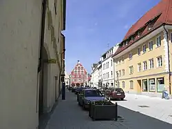 Das aus dem 16. Jahrhundert stammende Gasthaus zum Schwanen hieß früher Zur Krone und war das erste Gasthaus der Reichsstadt. Bis zum 18. Jahrhundert hatten dort viele hohe Herren ihre Herberge, darunter 1626 der Graf von Mansfeld, 1714 Prinz Eugen von Savoyen und 1743 Prinz Karl von Lothringen. Im Jahre 1634 wurde dort die erste Poststation der Stadt eingerichtet. Die heutige Arkadengliederung wurde wohl bei einer Modernisierung des Hauses im Jahre 1711 gewählt. Aus der ersten Hälfte des 18. Jahrhunderts stammt ein Treppengeländer mit Eichenholzbalustern. Im Erdgeschoss befindet sich die Gaststätte, in den oberen Geschossen sind Gästezimmer eingerichtet.[1]