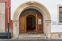 Das Portal des Gebäudes wurde im Baustil der Renaissance mit einer Sitznische gefertigt. Das Gebäude ist zweigeschossig und verfügt über ein Fledermausgaubendach. Im Inneren des Gebäudes sind Stuck- und Bohlendecken erhalten geblieben, die vom Denkmalamt als kunstgeschichtlich außerordentlich interessant eingestuft wurden.