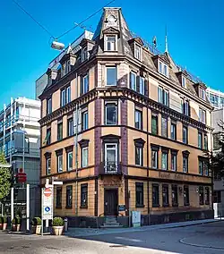 Das Gebäude im Stil der Neorenaissance gehört zu den zahlreichen Gastronomiebetrieben, die sich in der zweiten Hälfte des 19. Jahrhunderts in der Nähe des Esslinger Bahnhofs ansiedelten. Es wurde 1860 nach Plänen von Friedrich Metzger erbaut. Der damals noch zweigeschossige Fachwerkbau wurde mit Klinkern verblendet.[1]