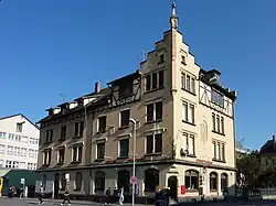 Die ehemalige Gaststätte Staufeneck in der Fleischmannstraße 10 / Kollwitzstraße 2 in Esslingen am Neckar ist ein historistisches Bauwerk von Hermann Falch.