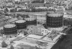 Das Gaswerk Schlieren, auch Gaswerk der Stadt Zürich, abgekürzt GWZ, in Schlieren war das grösste Gaswerk der Schweiz.[1] Es war von 1898 bis 1974 in Betrieb und versorgte die Stadt Zürich mit Stadtgas, bis die Umstellung auf Erdgas den Betrieb von Gaswerken in der Schweiz überflüssig machte. Das Gaswerk wurde an einem Standort ausserhalb der Stadt gebaut, um drei innerhalb der Stadtgrenzen liegende Gaswerke zu ersetzen. Ein Grossteil der historischen Betriebs- und Wohnbauten des Gaswerks Schlieren ist erhalten geblieben, einschliesslich einer der vier Gasometer. Diese Objekte sind als Zeugen der Schweizer Industriegeschichte von nationaler Bedeutung und stehen unter Denkmalschutz.[2] Die lokale Bevölkerung nannte das Werk Gasi.[3]
