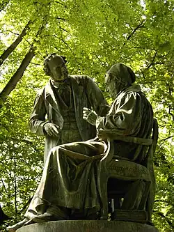 Denkmal für Weber (stehend) und Gauß (Gauß-Weber-Denkmal) in Göttingen