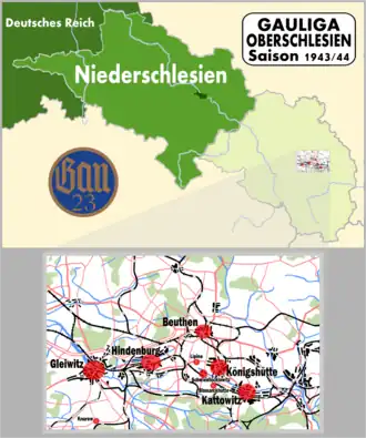 Die Gauliga Oberschlesien 1943/44 (offiziell: Sportbereichsklasse Oberschlesien 1943/44) war die dritte Spielzeit der Gauliga Oberschlesien des Fachamtes Fußball. Erneut wurde die Gauliga mit zehn Mannschaften im Rundenturnier mit Hin- und Rückspiel ausgetragen. Nach Ende der regulären Spielzeit waren drei Mannschaften punktgleich, so dass das Fachamt Fußball beschloss, eine zusätzliche Einfachrunde zwischen diesen drei Mannschaften auf neutralen Plätzen auszuspielen. Bei dieser konnte sich der FV Germania Königshütte durchsetzen und wurde dadurch zum dritten Mal Gaumeister Oberschlesiens. Dadurch qualifizierten sich die Gleiwitzer für die deutsche Fußballmeisterschaft 1943/44, bei der die Mannschaft jedoch erneut in der ersten Runde ausschied. Diesmal unterlagen die Gleiwitzer dem Titelverteidiger Dresdner SC auswärts deutlich mit 2:9. Die WSG Sportfreunde Knurow und der Beuthener SuSV 09 zogen sich kriegsbedingt nach der Saison aus der Gauliga zurück. Aus den Bezirksligen stiegen WKG Römergrube Rybnik und TuS Scharley auf.
