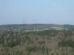 | Blick vom Aussichtsturm auf dem Hausberg zum Gaulskopf, davor Espa | ||