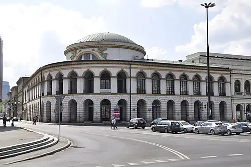 Im Hauptteil des Gebäudes befand sich ursprünglich der Sitz der Warschauer Börse (polnisch: Giełda), in einem kleineren Bereich Teile der Nationalbank (polnisch: Bank Polski) des Königreich Polens.
