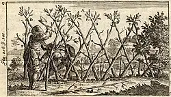„Sie schnitten junge Bäume ein und bogen sie. Zwischen ihre zahlreichen in die Breite wachsenden Zweige pflanzten sie Brombeer- und Dornbüsche und stellten so einen Schutzwall her, der an die Stelle einer Mauer trat und undurchdringlich war, ja sogar jede Sicht versperrte.“