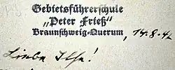 - ↑ Jürgen Schultz: Die Akademie der Jugendführung der Hitlerjugend in Braunschweig. S. 275.