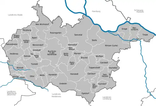 KönigsmoorOtterWelleTostedtWistedtTostedtHandelohUndelohDohrenHeidenauDohrenKakenstorfDrestedtWenzendorfHalvesbostelRegesbostelMoisburgHollenstedtAppelNeu WulmstorfRosengartenBuchholz in der NordheideEgestorfHanstedtJesteburgAsendorfMarxenHarmstorfBendestorfBrackelSeevetalLandkreis HarburgNiedersachsenLandkreis Rotenburg (Wümme)HeidekreisLandkreis LüneburgLandkreis StadeFreie und Hansestadt HamburgSchleswig-HolsteinGödenstorfEyendorfVierhöfenGarlstorfSalzhausenToppenstedtWulfsenGarstedtStelleTespeMarschachtDrageWinsen