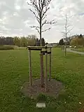Eine Informationstafel zu der Baumgruppe wurde im Mai 2025 aufgestellt. Sie wurde aus dem städtischen Bürgerhaushalt finanziert.[64][65] Zunächst war diese Idee einer Tafel mit der Begründung der Vandalismusanfälligkeit mehrfach verworfen worden.[17]