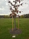 Die abgesägte deutsche Eiche für Enver Şimşek ersetzte direkt daneben Martin Böttger (Grüne) durch eine Kastanie aus seinem Garten. Die neun weiteren Bäume waren zunächst vorwiegend Eichen auch Ahorne und eine Blutbuche.[34][15] Später wurden zwei Ahorne durch klimatisch besser geeignete Amberbäume ersetzt.[67]
