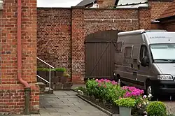 Die denkmalgeschützte Backsteinmauer aus den 1870er Jahren von ca. 3 m Höhe aus zwei parallel stehenden Mauerabschnitten in Südost und Nordost-Richtung waren die Begrenzung des rechteckigen Gefängnishofes vor der westlichen Traufseite des Gefängnisgebäudes. Am östlichen Abschnitt war das Einfahrtstor.[2]