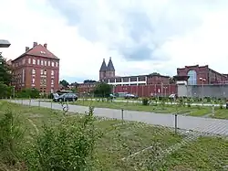 Die im Stil der Neugotik gestaltete Kirche ist Bestandteil des alten, kreuzförmig angeordneten, historischen Zellentrakts. Mit ihren zwei Türmen ist sie weithin zu sehen. Die Türme waren einst Wasserspeicher beziehungsweise Wassertürme mit einem Fassungsvermögen von 2 × 75 Kubikmeter Wasser.