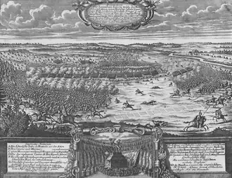 Das Feuer der Infanterielinien auf dem linken russischen Flügel war verheerend. Die Schweden und Russen schossen ohne Unterbrechung, dass ein starker Nebel das Schlachtfeld überzog. Erst nachdem es Major Hans Heinrich Wrangel gelang, den ersten spanischen Reiter zu beseitigen und die schwedischen Infanteristen in die Reihen der Russen eindringen konnten, wurde die Schlacht entschieden. Der Major fiel in diesem Gefecht.[6]