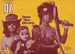 Das Oz Magazin wurde zunächst als satirisches Humor-Magazin zwischen 1963 und 1969 in Sydney veröffentlicht und wurde in seiner zweiten und bekannteren Inkarnation zu einem "psychedelischen Hippie"-Magazin von 1967 bis 1973 in London. Es wurde stark als Teil der Untergrundpresse identifiziert und war Gegenstand zweier berühmter Obszönitätsprozesse, einer 1964 in Australien und der andere 1971 im Vereinigten Königreich.[75][76]