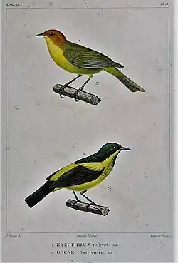 - ↑ Dacnis Erstbeschreiber genannt.in The Key to Scientific Names Edited by James A. Jobling