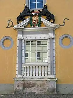 Zusammen mit dem südlich angrenzenden Roten Schloss (1574–1576) und den beiden klassizistischen „Torhäusern“ (1820) von Coudray bildet der historische Baukomplex mit der Bezeichnung „Markt 15“ einen Innenhof umschließenden Gebäudering.