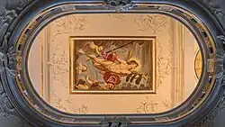 Das Deckengemälde des Rokokosaales der Herzogin-Anna-Amalia-Bibliothek Der Genius des Ruhms ist die 2007 geschaffene Rekonstruktion des verbrannten Deckengemäldes Johann Heinrich Meyers nach Annibale Carracci, die der Augsburger Kunstmaler Hermenegild Peiker samt Windrose und gemalten Stuckverzierungen direkt auf den Putz brachte.[1]