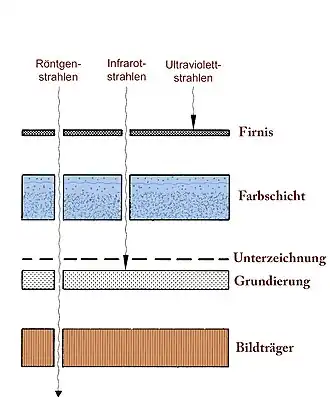 - ↑ M. Hours: A la découverte de la peinture par de méthodes physiques. Paris 1957.