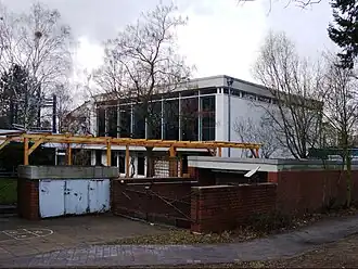 Die flachgedeckte Saalkirche ist ein eigenständiger Gebäudetrakt, in einem Anbau sind Jugendräume, das Gemeindebüro und Wohnungen untergebracht. Die Längswände der Saalkirche sind großflächig verglast. Die Stirnwände sind bis auf ein hochliegendes Fensterband verschlossen.