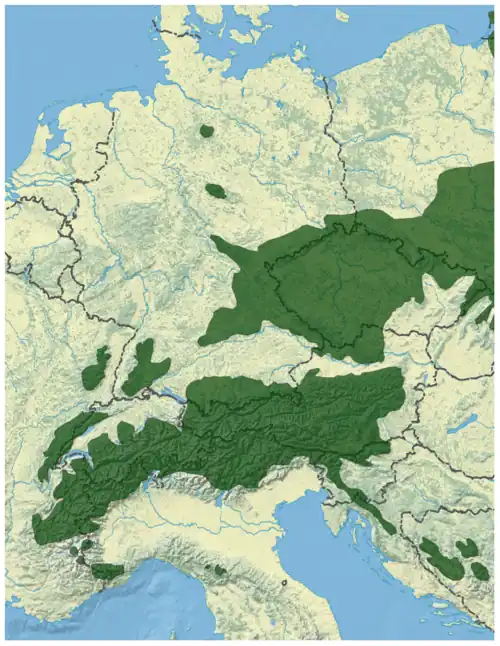 - Picea abies var. acuminata (Beck) Dallim. & A.B. Jacks.: Sie kommt im Jura, in den Alpen und in den Karpaten vor.[26]