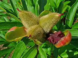 Je Blüte können sich zwei oder mehr Balgfrüchte entwickeln. Die Ausbreitung erfolgt durch größere Ameisen, es findet wohl auch Bearbeitungsausbreitung durch Vögel statt. Die Samen sind ölreich, Kälte- und Lichtkeimer.[6]