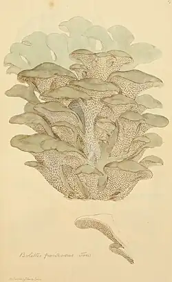 - ↑ Eric Strittmatter: Datensatz des Klapperschwamms. Auf: Pilz-Taxa-Datenbank auf FungiWorld.com. Abgerufen am 14. September 2011.