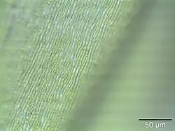Die Blätter sind breit eiförmig und vorne mit einer kurzen Spitze. Die ungefähr bis zur Blattmitte reichende Blattrippe ist gegabelt oder von Grunde an doppelt. Die Blätter sind deutlich hohl und liegen entlang des Stämmchens so übereinander, dass unter ihnen ein abgeschlossener Hohlraum entsteht. Hierdurch wirken die Stämmchen wurmförmig oder geschwollen. Man geht davon aus, dass in diesem Hohlraum durch Kapillarwirkung Wasser entlanggeleitet werden kann.